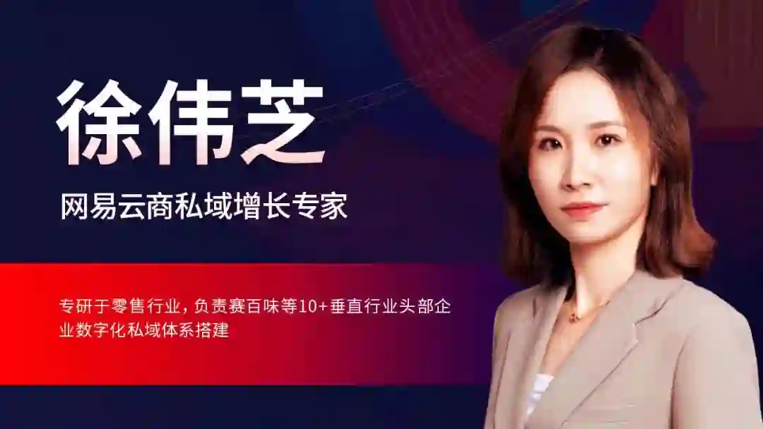 网易云商私域增长专家@徐伟芝老师,一直深耕于零售行业消费者研究与用户运营增长,目前她负责零售行业研究与私域解决方案,为赛百味等 10+ 垂直行业头部企业搭建数字化私域增长体系。本场大会,她将聚焦于企业数字化私域体系搭建话题,来跟我们分享一些她的实战案例。