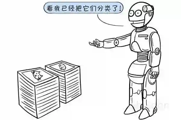 经过一段监督学习的过程之后,计算机就能把你输入的照片按照相似性分成两个大类(也就是区分了猫和狗)。只不过计算机只是从数字照片的数学特征的角度进行了分类,而不是从动物学的角度进行了分类。