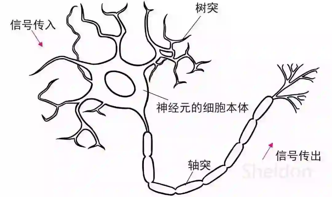 人类的大脑是一个复杂的神经网络。它的组成单元是神经元。每一个神经元看起来很简单,它们先接收上一个神经细胞的电信号刺激,再向下一个神经细胞发出电信号刺激。