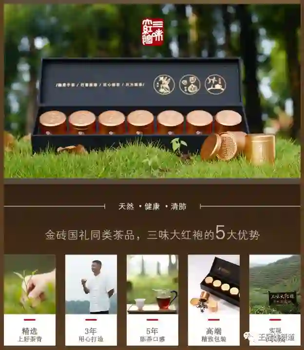 三味大红袍,则把茶文化和中药文化进行了深度融合,并提出“融爱于茶,行善修德,匠心制茶,只为健康”,把茶药文化上升到文化层面。同时,为了展示制造过程的匠心和工艺创新,三味大红袍也邀请到“舌尖上的中国”制作团队,专门制作三味大红袍的制作工艺,让关心健康的人们,全方位了解三味大红袍。
