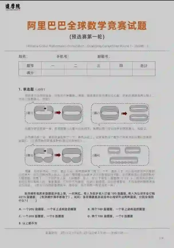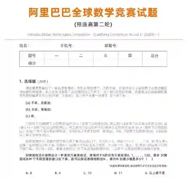 4 道题目,5 万名选手参赛,两天两夜,只有 1.5 万人交卷。半个月前,第二届阿里巴巴全球数学竞赛的第一轮预选赛难倒了许多人。
