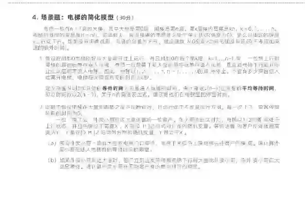 继淘宝卖家、蚂蚁森林之后,饿了么小哥送外卖也被融进了试题之中。第四题仍然是一道场景题,主题为「电梯的简化模型」,答案长达 8 页。