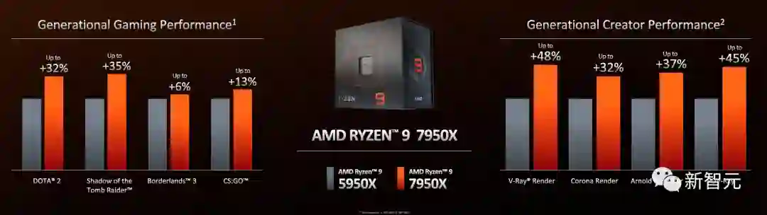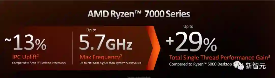 台积电的5nm工艺节点配上全新的Zen 4架构,也给7000系带来了13%的IPC提升。
