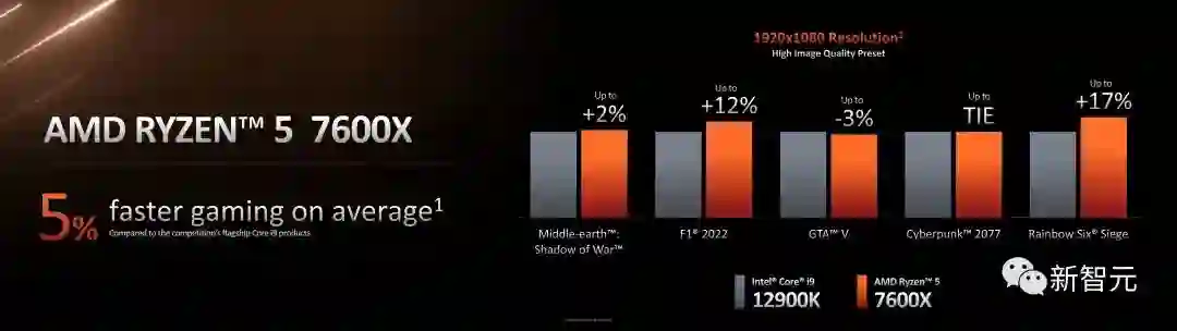 按照AMD的说法,就连甜品级的7600X,都能和12900K打得有来有回。