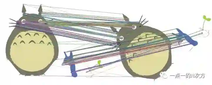 假设有六个关键帧(红黄绿蓝紫黑),对应颜色框里的地图点为各自观测到的点,可以看出红黄两帧共同观测到的地图点个数为5,红绿共同观测到1个,黄绿共视个数为3,以此类推。