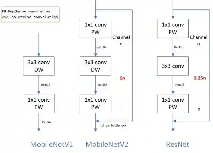 2. MobileNetV1、MobileNetV2 和 ResNet 微结构对比