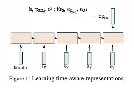 摘要:知识图谱中链接预测的研究主要集中在静态多关系数据上。在这项工作中,本文考虑了时间知识图谱,其中实体之间的关系可能只保持一个时间间隔或特定时间点。根据以往关于静态知识图谱的工作,本文建议通过学习潜在实体和关系类型表示来解决这个问题。为了整合时间信息,本文利用递归神经网络来学习关系类型的时间感知表示,这可以与现有的潜在因子分解方法结合使用。该方法被证明对实际的KG中常见的挑战:时间表达式的稀疏性和异构性,具有鲁棒性。实验显示了本文的方法在四个时间(temporal)KGs上的优势。