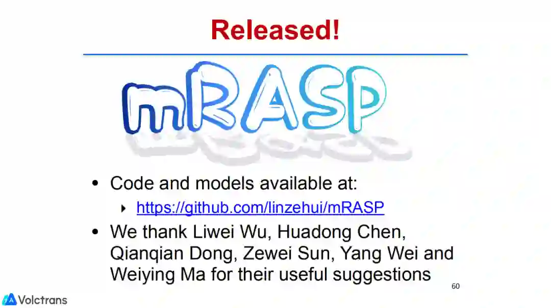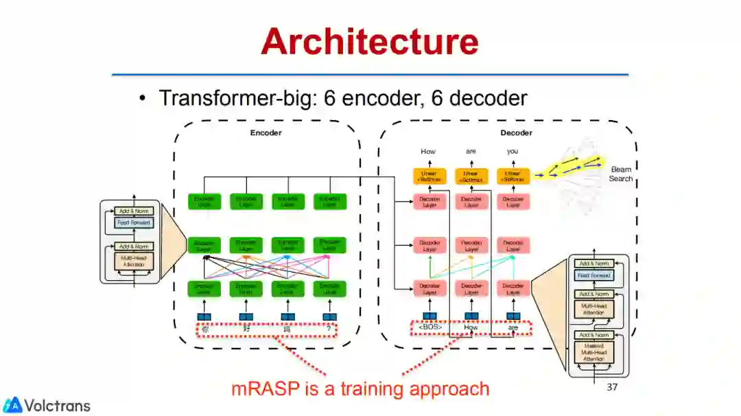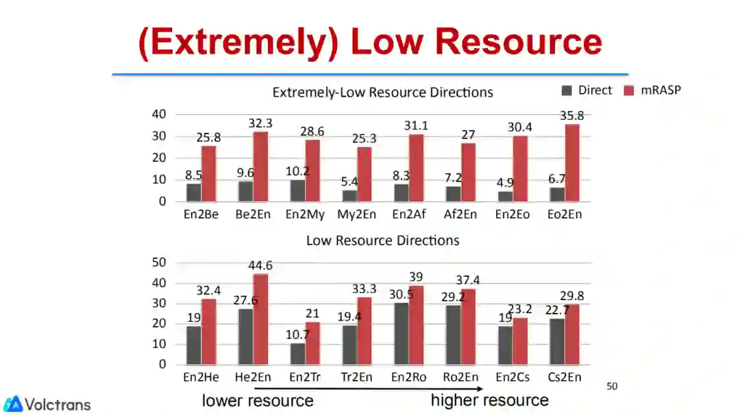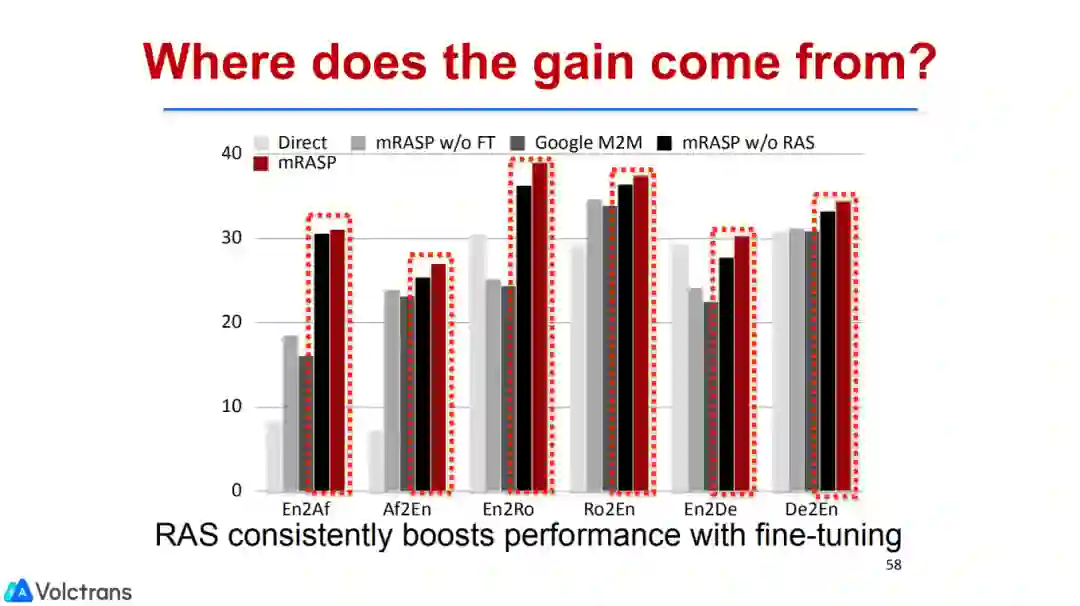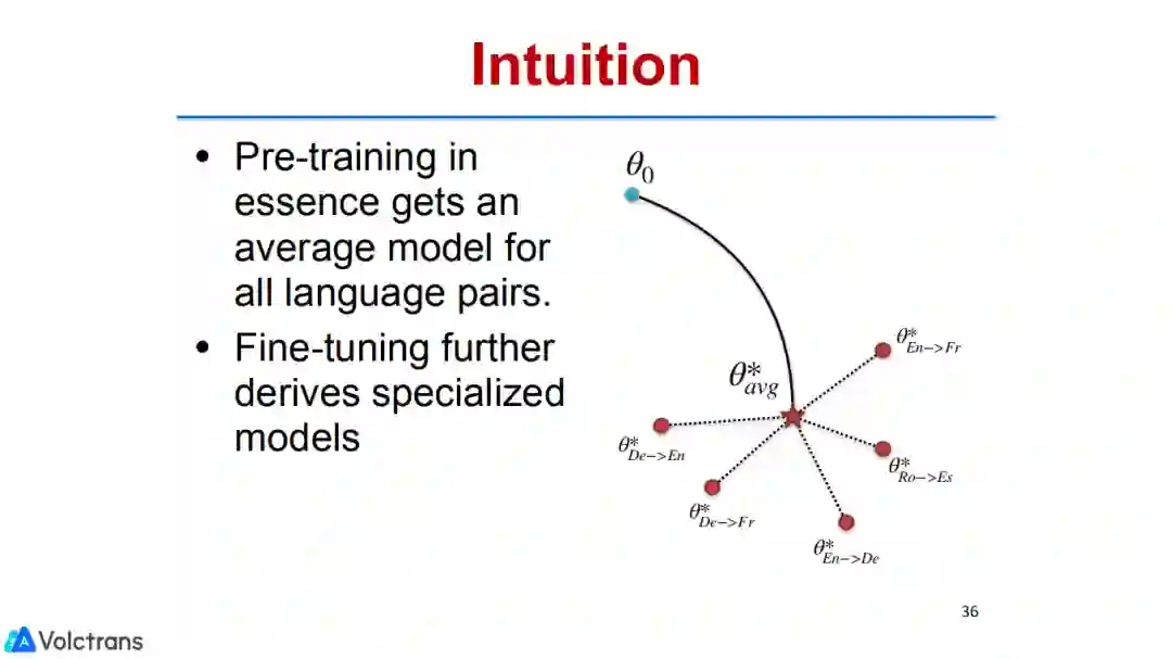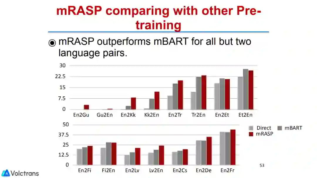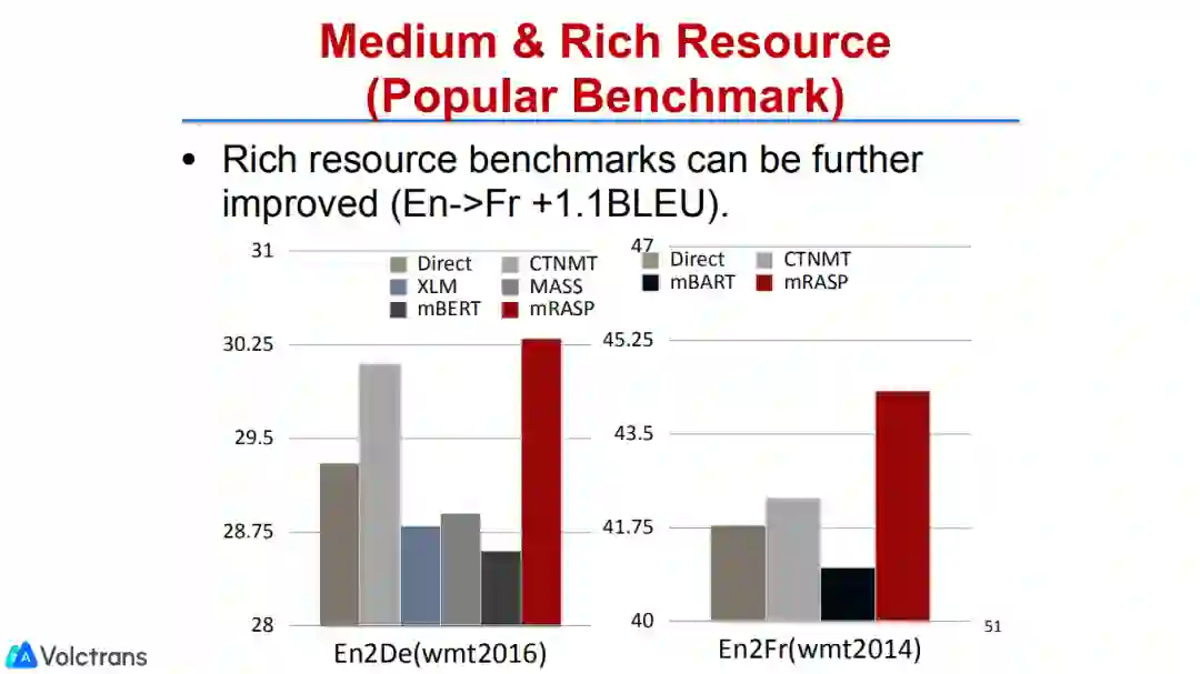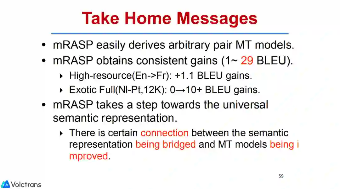 同样的一个思路,我们思考如何做pretraining,因为之前的pretrain model可能大家是用bert和GPT做,下游任务做fine-tuning,我们也在思考如何做一个针对机器翻译的multilingual的pretrain model,可以在任何机器翻译的方向上做fine-tuning,相当于机器翻译领域的bert,让整个过程变得更简单高效。