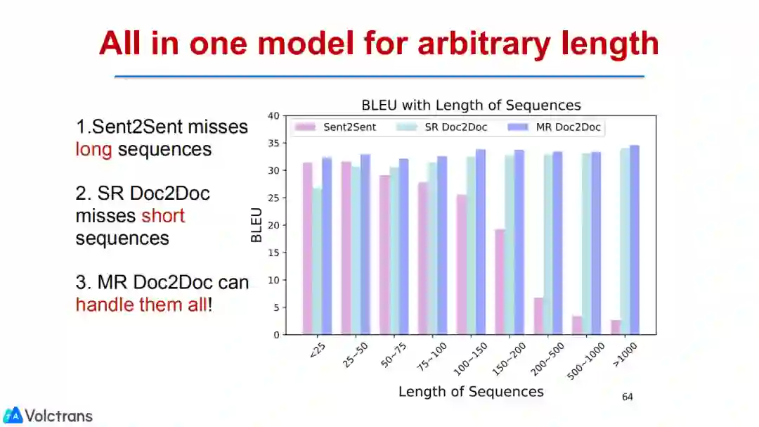 也做了pre train fine-tuning。文档翻译能够做到任何长度的翻译,在2000个字符的长度上我们都可以实现非常好的效果。