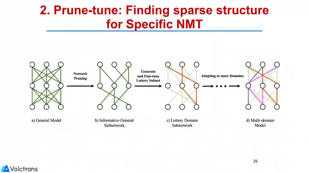 2. Prune-tune:找出适合特定神经网络机器翻译任务的稀疏网络结构