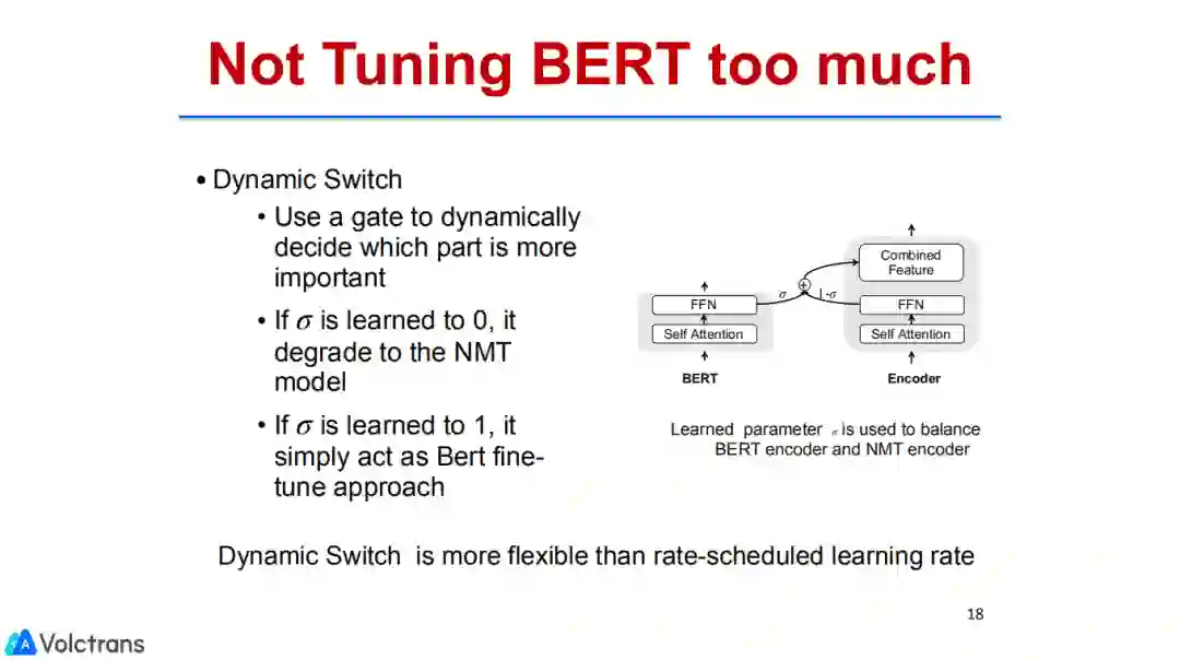 Dynamic Switch:在上述基础上我们又用一个gate来控制这种更新,即dynamic switch,通过gate来控制bert和NMT encoder对翻译的贡献比例,然后用它来控制更新,尽可能多的保留bert的信息。