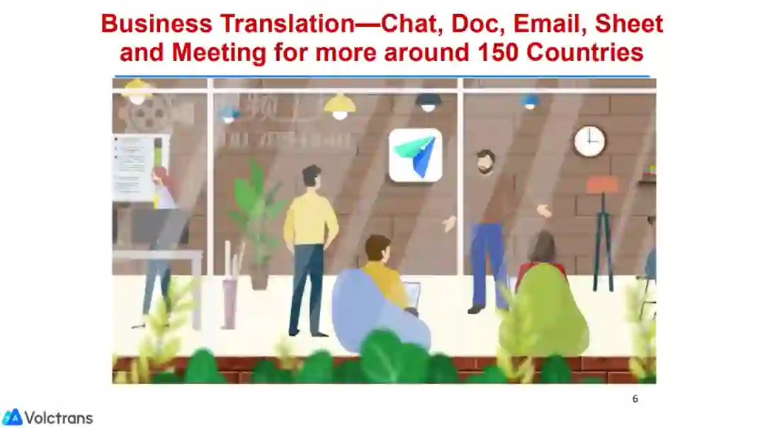 然后另外一个场景就是办公翻译,比如说日常的跨语言办公。现在很多公司其实都是跨国公司,日常工作中大家需要跨语言交流,使用跨语言的文档、email以及表格。在开会时也需要翻译。