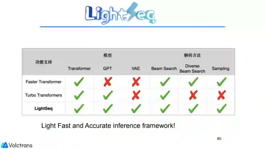 另外我们的整个模型要serve,包括multilingual model,引入bert,其实整个model是非常heavy,如何把它做上线也是我们考虑的问题,所以我们同时也发布了一个非常高效的、非常快速的解码器,使我们的inference速度几乎比原生tensorflow要快十倍以上,能够serve我们的大模型,能够支持我们的pre train大模型上线。