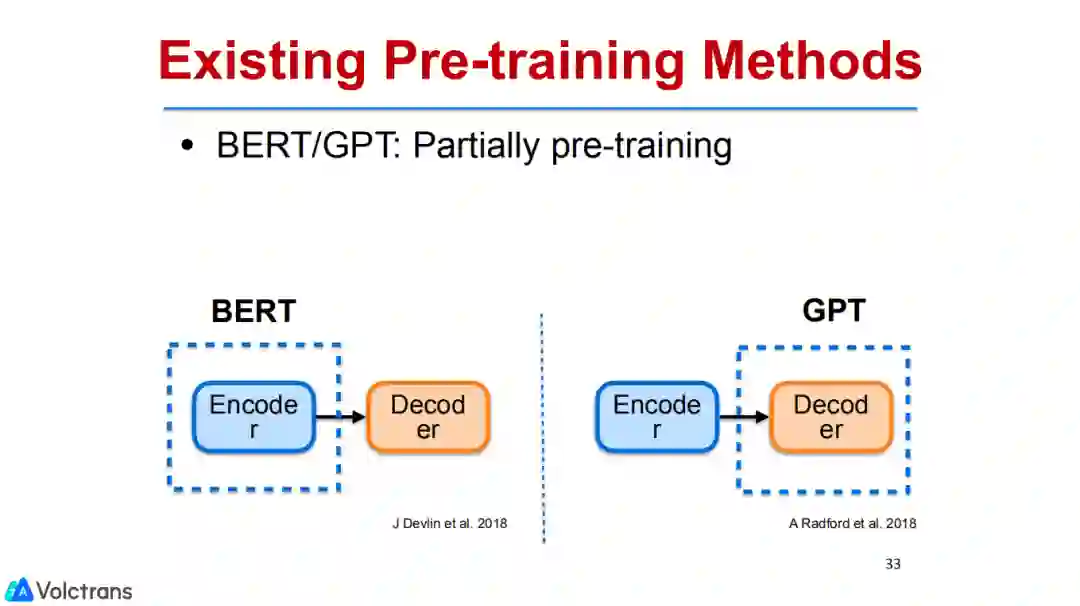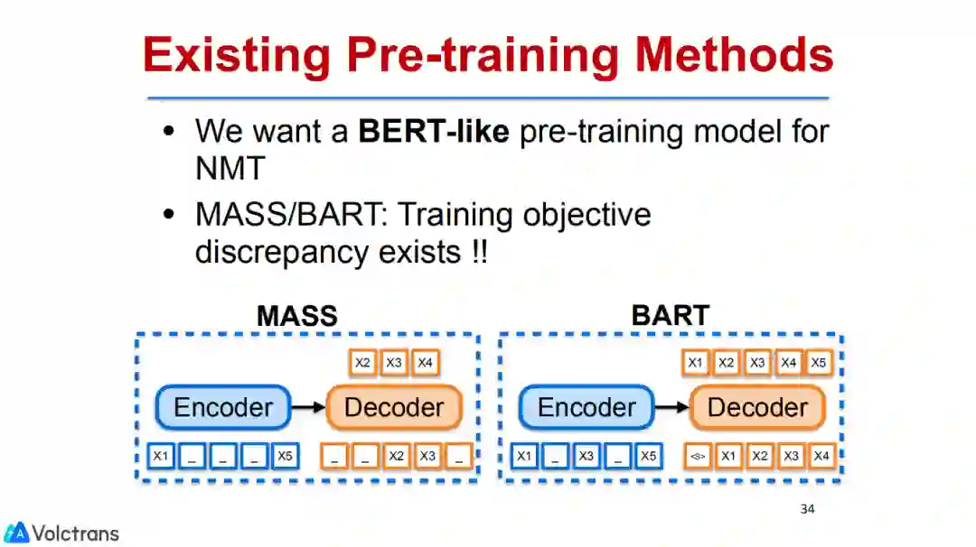 像之前的mass或者bert,都是同一种语言的autoencoder,也不是针对翻译的,它是英语到英语或者法语到法语的sequence to sequence pretrain,并不是英到法这样的pretrain。