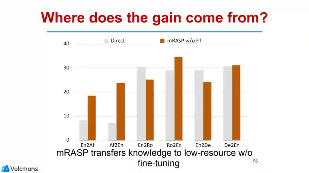 这里一件比较有启发的事情是:我们有可能只训练一个机器翻译的pretrain model,就可以针对任何语言对做fine-tuning并获得提升。