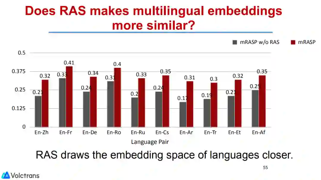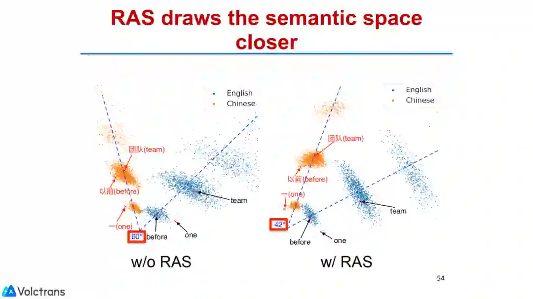 另外我们也做了一些分析,发现它确实拉近了多语言之间的相似性。通过RAS替换,语言之间的cosine similarity以及表示更接近了。