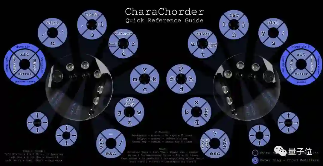 这些摇杆按动方式可以进行组合,输出300多种不同的字符,覆盖传统键盘上的所有按键。