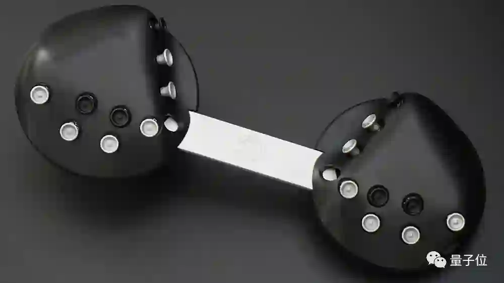 对,你没看错,这种新型打字机(CharaChorder)没有按键,而是靠每个手托上的9个摇杆来输入字符。