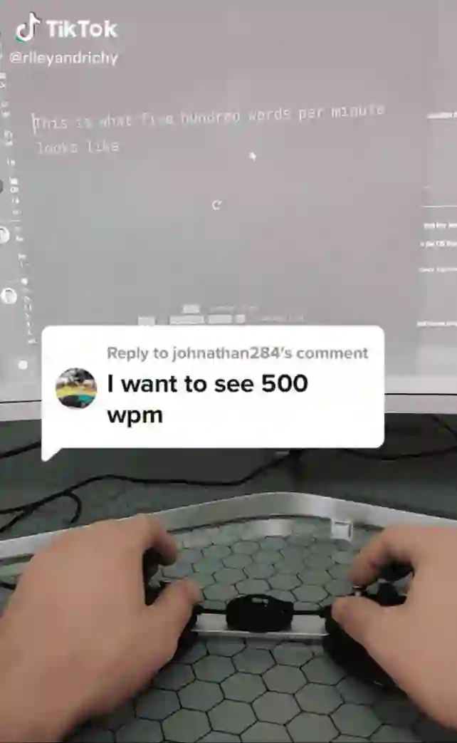 不信?我们从CharaChorder的CEO Keen发布的TikTok中看一下实战效果: