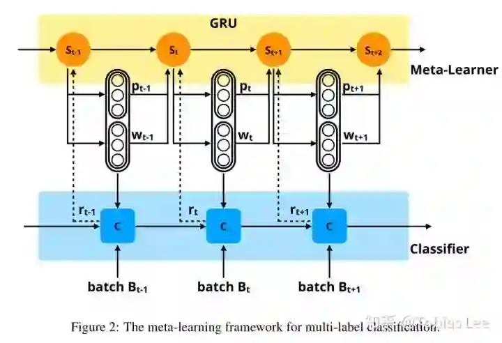 Learning to Learn and Predict: A Meta-Learning Approach for Multi-Label Classification:EMNLP 19, 长文,这篇文章利用 Meta-Learning 的方式不再是学习初始化,而是之前的方式一:输出模型的参数。具体来说,是输出一个多标签分类器的 threshold 以及各个标签类别对于 loss function 的权重,motivation 在于: