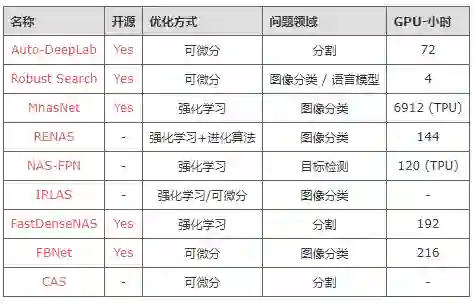 下面本文将目光转向在CVPR 2019会议上登场的NAS相关工作。如果你只想看大体的总结,下表包含了这些工作的论文和代码地址(前提是它开源)、它们使用的搜索算法、领域和需要的资源。如果这里没有涉及您的文章,可能是我的疏忽导致它被忽略了——请您及时指正。CVPR 2019的所有论文都可以在这里找到。