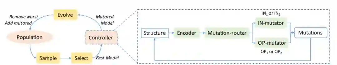 RENAS的主要思路在于:使用可微的强化学习控制器来增强锦标赛选择法的变异机制。