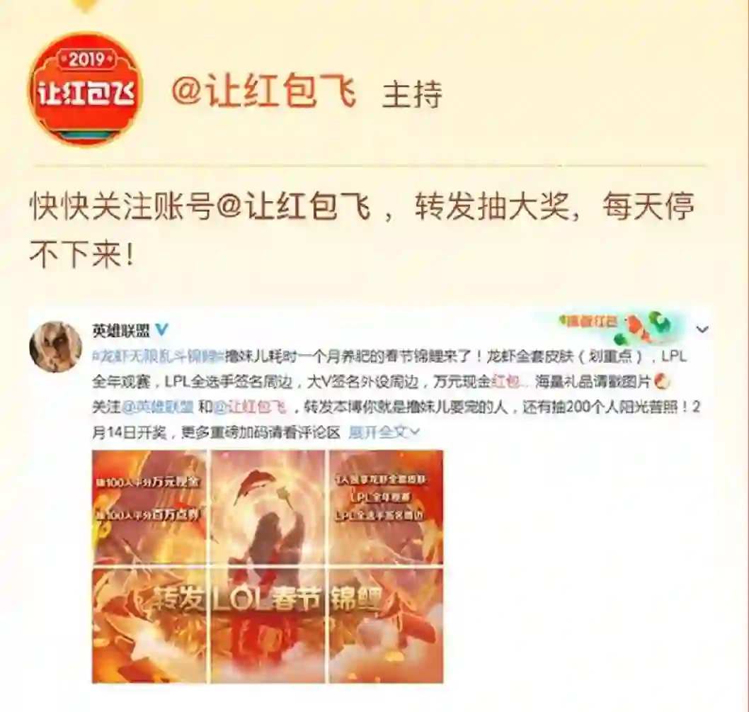 2月3日,微博宣布与2019年央视春晚达成视频及直播内容合作,双方将延续往年在视频及新媒体传播层面的深度合作,联手在春节期间推出央视春晚视频直播、相关节目集锦、幕后花絮以及亮点剪辑,除此之外微博还将上线花式拜年、趣味点评、打卡晒照等多样化的互动活动,丰富春节期间央视富媒体内容传播和视听感受,为全球华人带来最便捷、最有温度的新春跨屏体验。