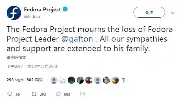 据 Fedora 官方推特消息,Fedora 项目负责人 Cristian Gafton 已去世,Fedora 项目组对这一消息表示了沉重的哀悼。