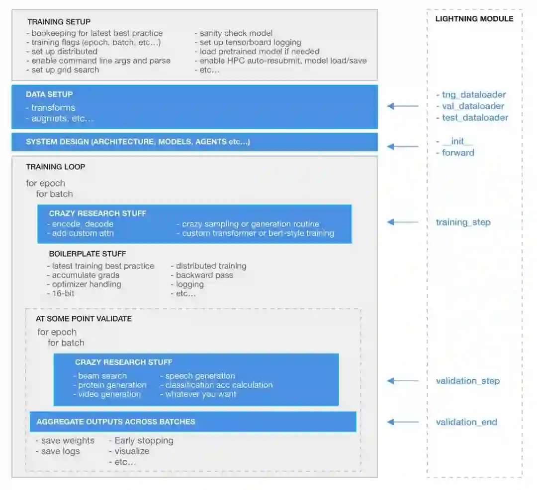 要完成这样的工作,工作量肯定是非常大的,因为从超参搜索、模型 Debug、分布式训练、训练和验证的循环逻辑到模型日志的打印,都需要写一套通用的方案,确保各种任务都能用得上。所以 Facebook 的这位小哥哥 William Falcon 还是很厉害的。