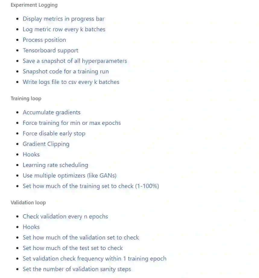 当我们开始构建新项目,最后你希望做的可能就是记录训练循环、多集群训练、float16 精度、提前终止、模型加载/保存等等。这一系列过程可能需要花很多精力来解决各式各样、千奇百怪的 Bug,因此很难把精力都放在研究的核心逻辑上。