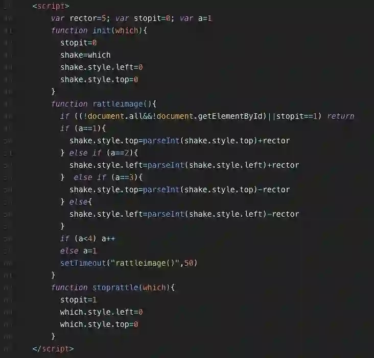 以上面的图片震动功能来说,就只是用 JavaScript 写了以下代码: