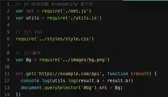 现在你可以直接在代码裡面写:var A = require(‘libraryA’) 去引入一个 library,而不是用 <script/> 标签去引入。而背后的原理就是靠着browserify 去帮你实作 require 这个函式,自动帮你处理好背后的相依性问题。