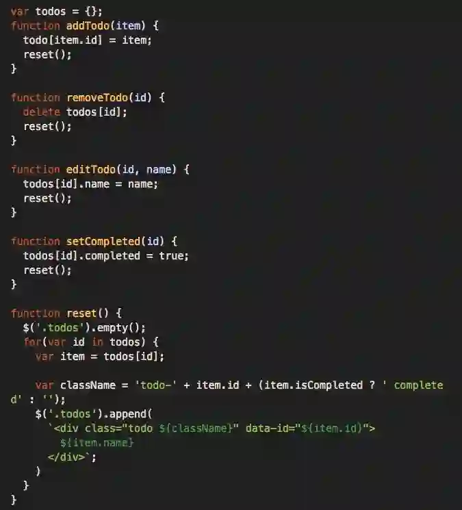 难吗?乍看之下没那麽难,我们可以写出以下的程式码,在操作 todo 的时候同时操作 UI 以及内部的状态: