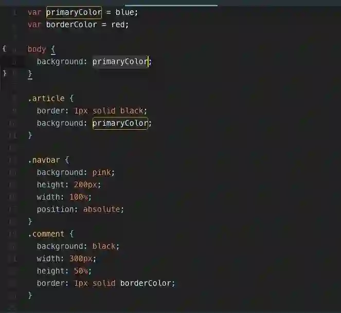 有没有可能把程序的概念引入到 CSS里面去呢?例如说变量?这样我们就能够用变量来取代写死的颜色,要改的话也很方便,只要改一个地方就好: