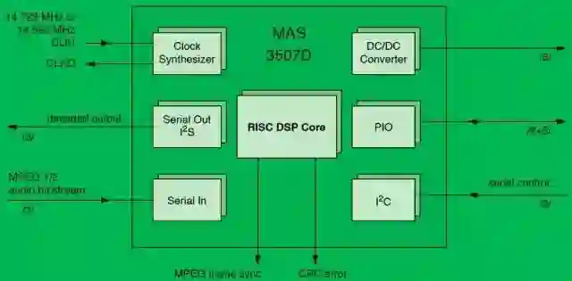 正如这个 Micronas 的设计文件所显示的,MAS3507是只为做好一件事设计的,即只能很好地解码 MPEG Audio Layer III(即MP3)数据。