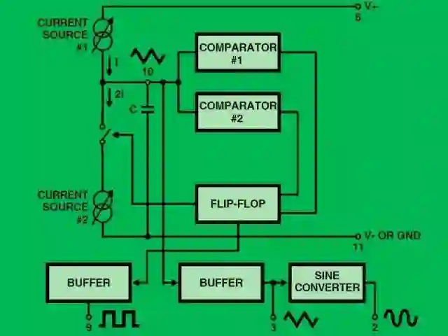 一个好的基本波形——随时间变化的电压——是构建更复杂行为的原材料。Intersil的ICL8038 集成电路的设计是为了方便地获得精确的波形,能够同时产生正弦波、矩形波和锯齿波等周期信号,只需要很少的外部元件。