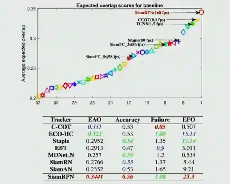 训练过程中,算法可以利用密集标注(VID)和稀疏标注(YoutubeBB)的数据集对进行训练。相比于现有方法,稀疏标注的数据集大大增加了训练数据来源,从而可以对深度神经网络进行更充分的训练;Region Proposal Network 中的坐标回归可以让跟踪框更加准确,并且省去多尺度测试耗费的时间。