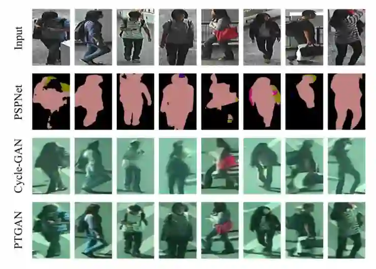 张史梁等人提出的 person transfor GAN(PTGAN)如下图所示: