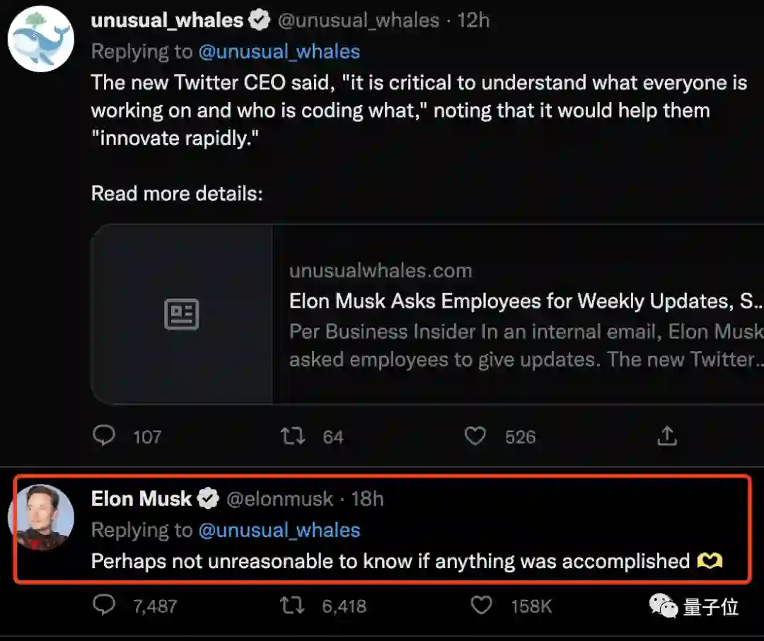 推特裁员刚告一段落,马斯克又开始新动作了:写周报!