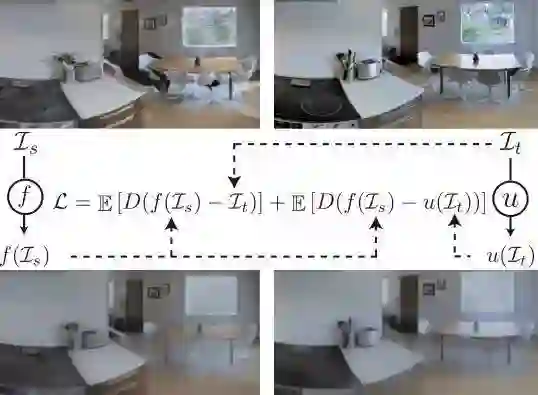 我们项目的另一个创新是把像素级别域迁移 (pixel level domain adaptation) 的机制嵌入到渲染引擎当中。我们的后处理网络 f 可以让渲染看起来像真实世界中的照片,与此同时我们还训练了另外一个网络 u,让真实世界中的图片看上去像我们的渲染。