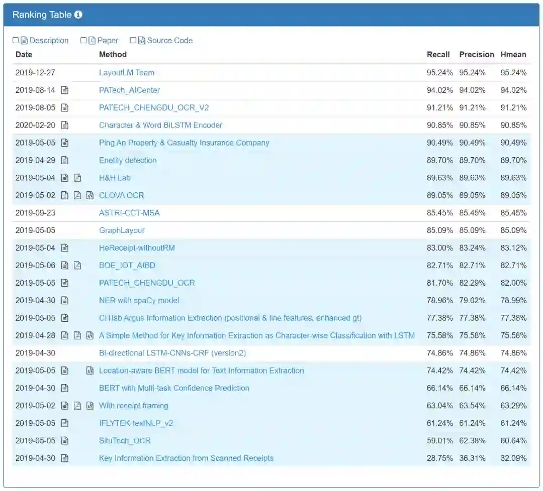 图3:SROIE 测评排名情况[4] (截至2020年3月)