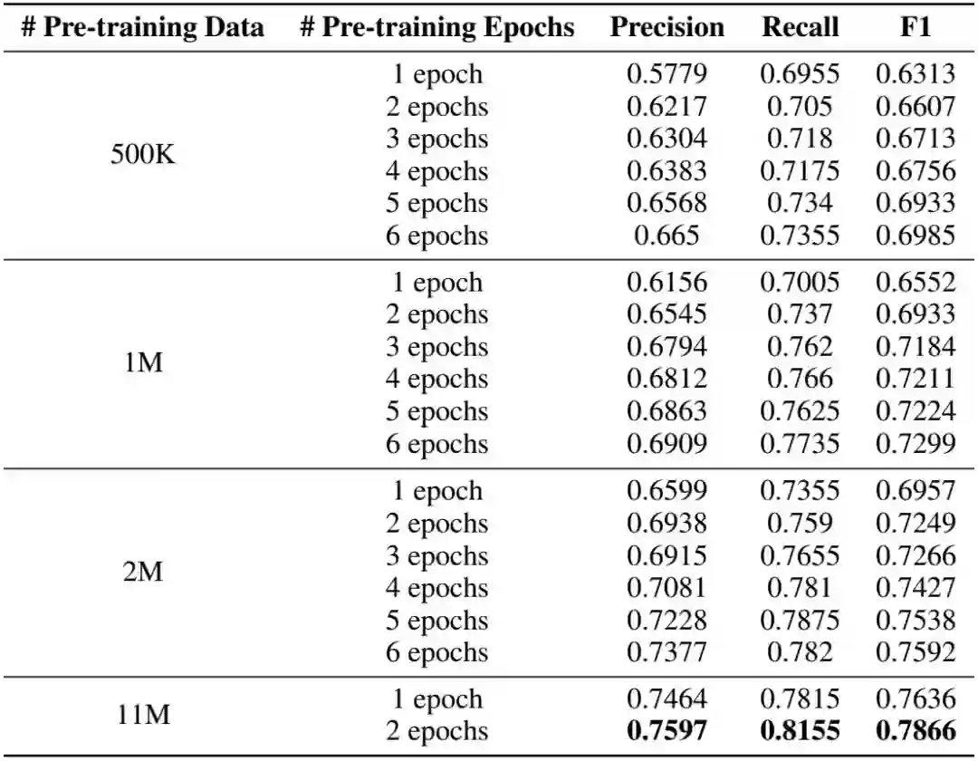 表4:不同训练步长和数据量情况下 LayoutLM 在 FUNSD 数据集上的实验结果对比