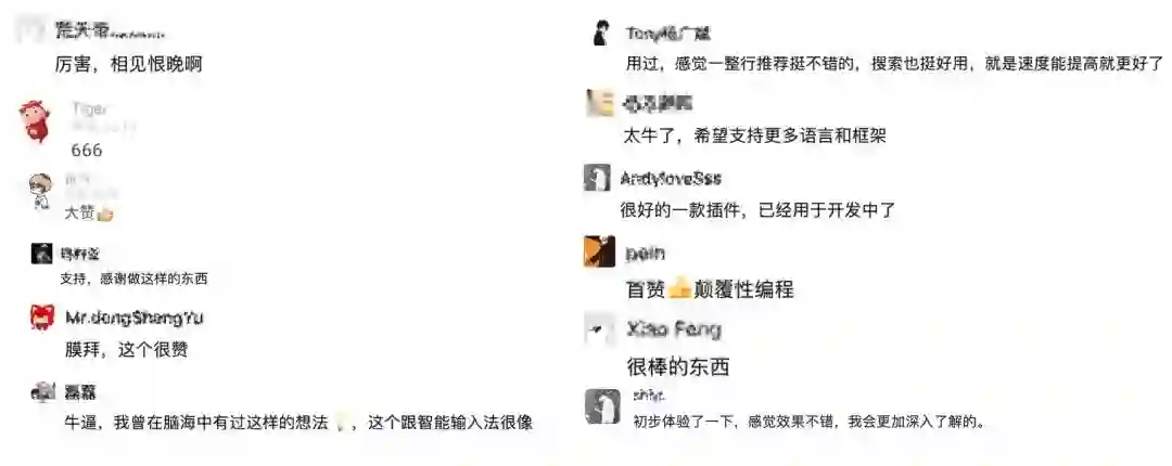 难怪不少使用过的网友说:aiXcoder是他们用过的最好的代码补全工具,好评如潮: