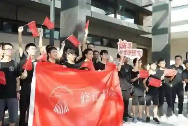 同学们用鲜花,标语,掌声,欢呼声,