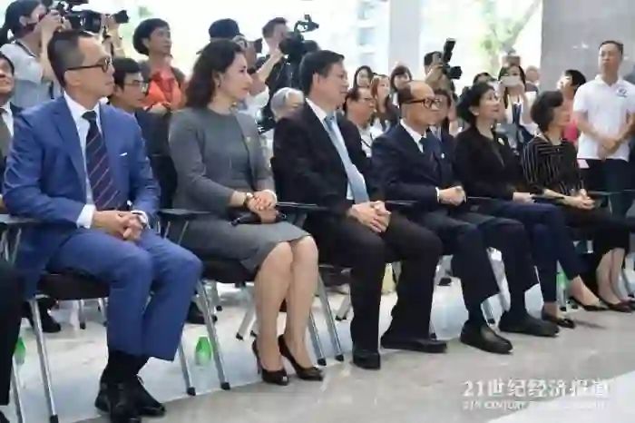 6月28日,汕头大学一座拥有国际顶尖科研团队及最先进实验设施和配备新的科研楼在校内揭牌启用,作为汕头大学董事会名誉主席的李嘉诚携次子李泽楷出席活动。