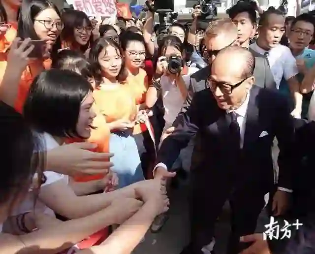 李嘉诚一行受到同学们的夹道欢迎。