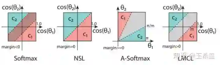 为0的时候,margin=0, 而CosFace(即LMCL)克服了这个缺点,两个类别之间有一个明确的决策边界(margin>0), 相对来说有更好的鲁棒性