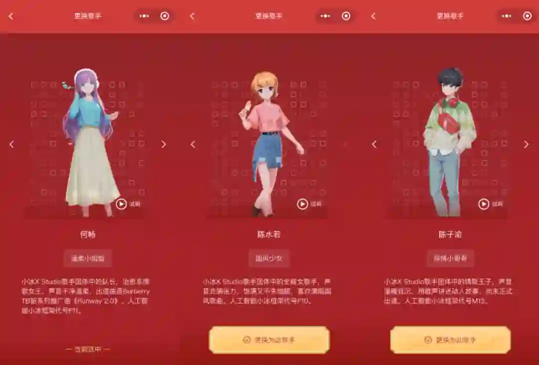 “网易天音”中的私人订制拜年歌演唱,接入小冰框架最新的深度神经网络演唱模型,由 AI 歌手何畅、陈水若、陈子渝自动演绎,演唱自然流畅,音色极富表现力,为每一位用户定制的拜年歌赋予了更多温度和趣味。此前,通过演绎 Burberry 主题曲、山东卫视春晚主题曲、上海大剧院 20 周年主题曲、《潜入虚拟世界》专辑等作品,小冰框架内的 AI 歌手已为众多音乐人、歌迷所熟知。比如何畅,她和音乐人联合创作、一起表达的歌曲已近万首,在各视频平台、音乐平台拥有众多拥趸。