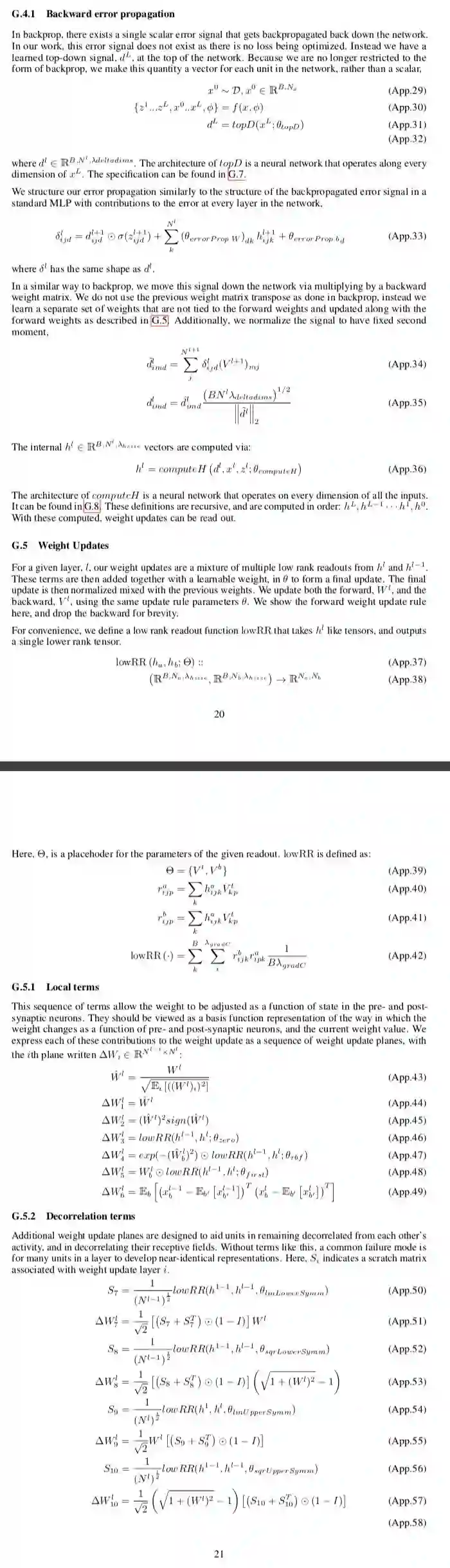 We wish for our update rule to generalize across architectures with different widths, depths, or even network topologies. To achieve this, we design our update rule to be neuron-local, so that updates are a function of pre- and post- synaptic neurons in the base model, and are defined for any base model architecture. This has the added benefit that it makes the weight updates more similar to synaptic updates in biological neurons, which depend almost exclusively on the pre- and post-synaptic neurons for each synapse [48].