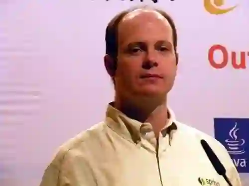 这个小伙子是谁呢?他就是大名鼎鼎的 Rod Johnson(下图),Rod Johnson 在悉尼大学不仅获得了计算机学位,同时还获得了音乐学位,更令人吃惊的是在回到软件开发领域之前,他还获得了音乐学的博士学位。现在 Rod Johnson 已经离开了 Spring,成为了一个天使投资人,同时也是多个公司的董事,早已走上人生巅峰。